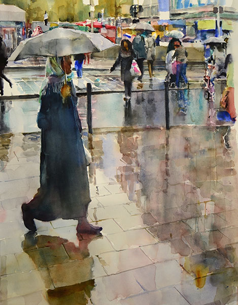 Watercolors are perfectly suited for St. Leger’s creative goals as their strong atmospheric qualities help capture a sense of ephemerality or a fleeting snapshot. “He transforms these images with his loose rendering style,” his website suggests, “an attitude of experimentation which may stem from teaching himself to paint, into something perhaps personal, but also ambient and more enduring. Each painting is approached as if with a question that invokes a dialogue between the artist and his surroundings, between a cautious being and an irrational force.”
