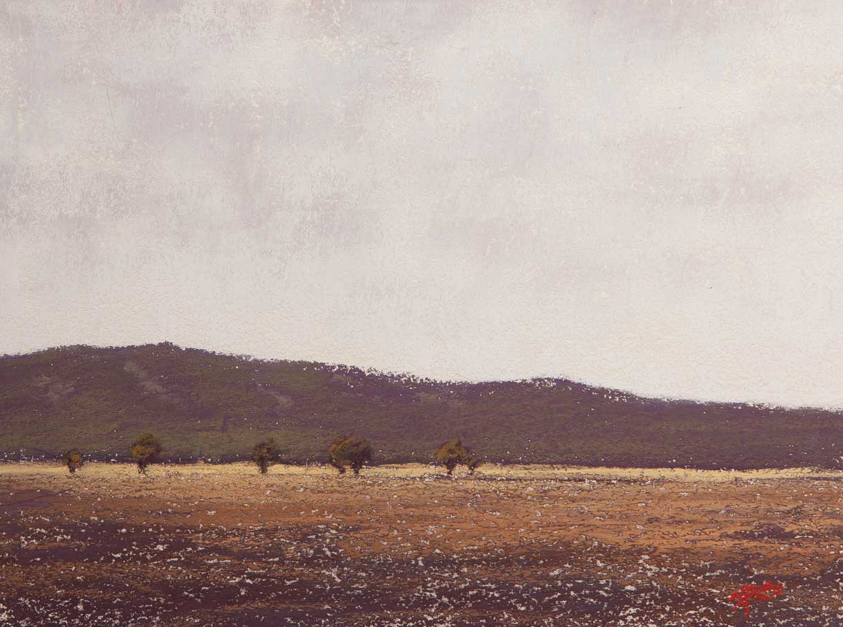 “Subtlety is suggestion,” Sperlak says. “It has to be simple to be special.” The artist points to the road scratched into the quick plein air sketch of his ‘Icelandic Horses in the Distance’. The concept is even more pronounced in ‘Snaefellsnesjokull’, in which a thin, dark line completes the composition as it runs along the ridgeline of the foothill in middle ground. “Cover it up with your finger, and you will see how important that line is,” he says.