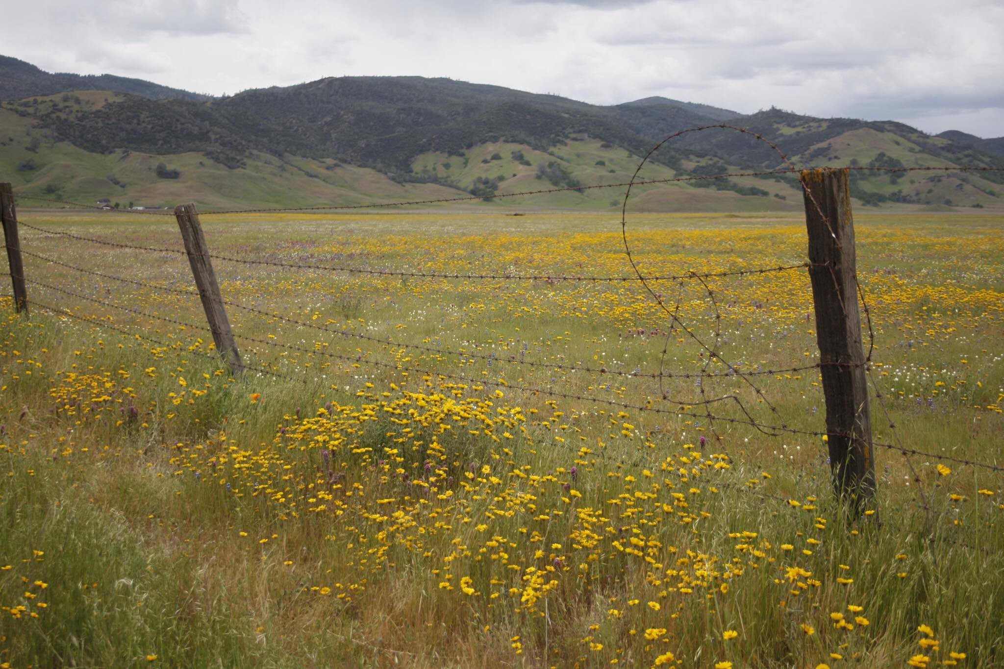 “The lower desert areas have been blooming for a few weeks, and that will soon close as the warmer season is upon us. You can still see clusters and pastures of yellow along the interstate, with purple and pinks scattered. The cactus plants are blooming as well. In my immediate area, the wild daisies are coming to an end and the purple verbena is scattered, poppies are scattered, but we don’t get them like they do in Lancaster near the Poppy Reserve.