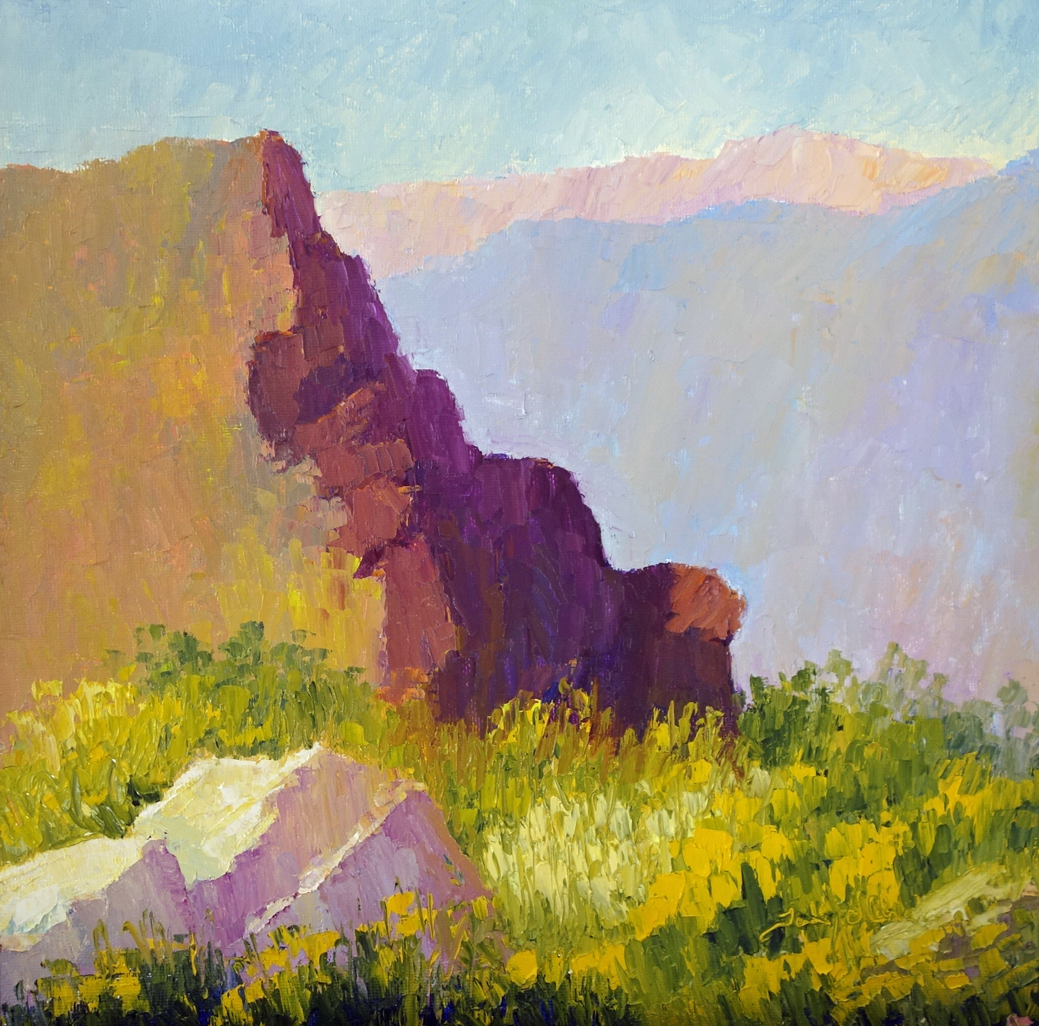 “By the end of April I think the intense colors will be gone in the lower elevations, but then we should get some beautiful colors in the higher elevations after that — it’s still a little cold at night in those areas. Still time to get some beautiful color in the paintings, and I plan to be out painting when I can. Amazing what a little rain does for the desert.”