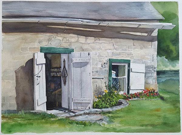 Lead Image: “The Bait Shack,” by Elena Shackleton, 2015, watercolor, 15 3/8 x 11 3/8 in.