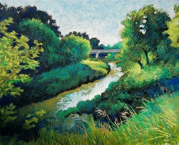 Lead Image: “Creek at Tranquility,” by Brian Brigham, 2016, pastel over acrylic on foamboard, 8 x 10 in.